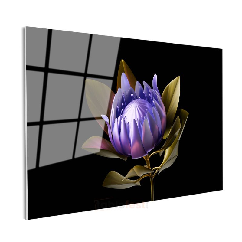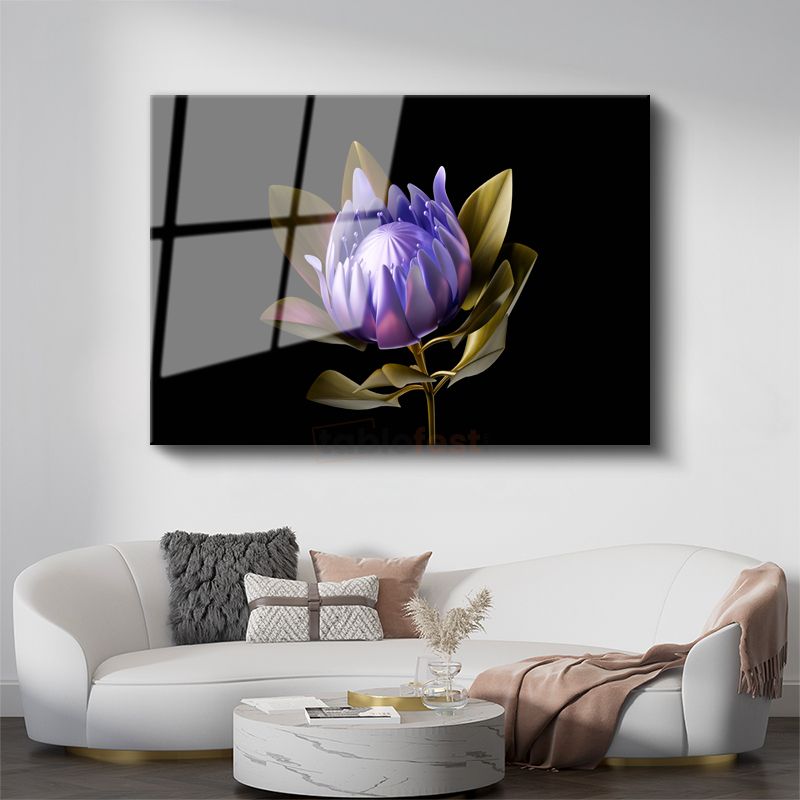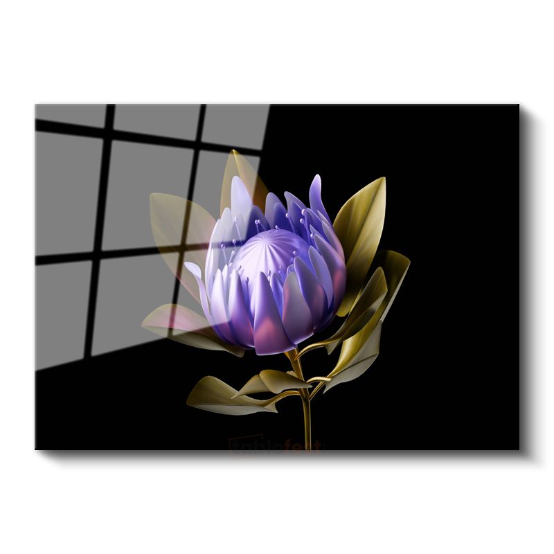 Mor Protea - Siyah Fonda Egzotik Çiçek Portresi Cam Tablo
