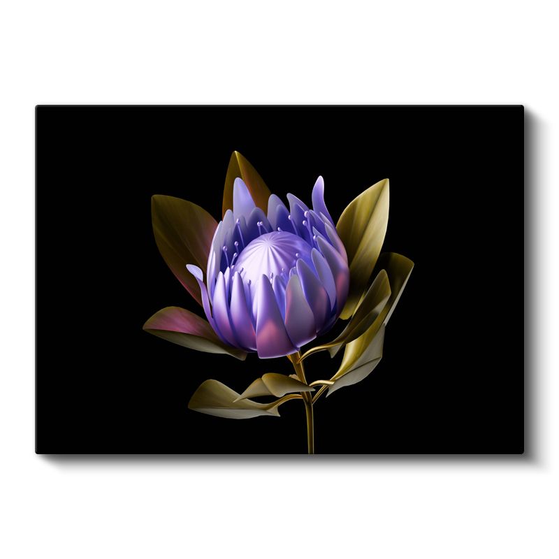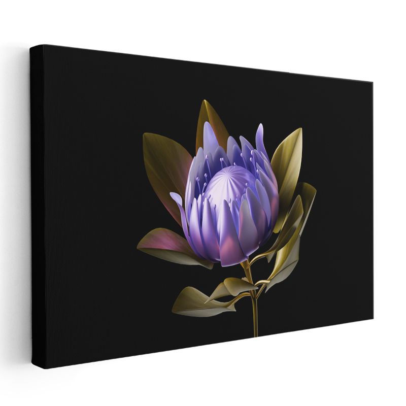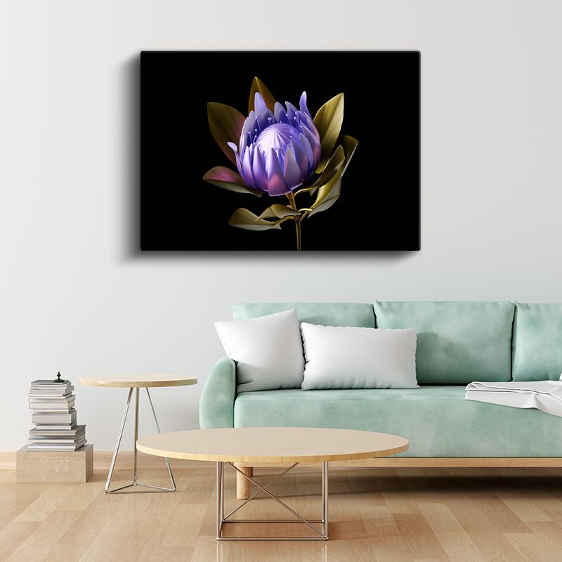 Mor Protea - Siyah Fonda Egzotik Çiçek Portresi Kanvas Tablo
