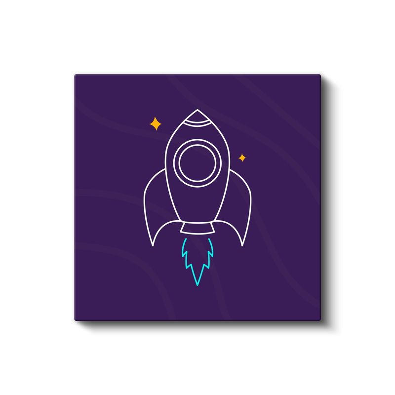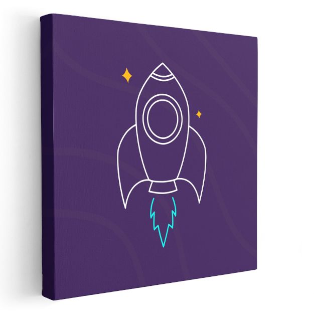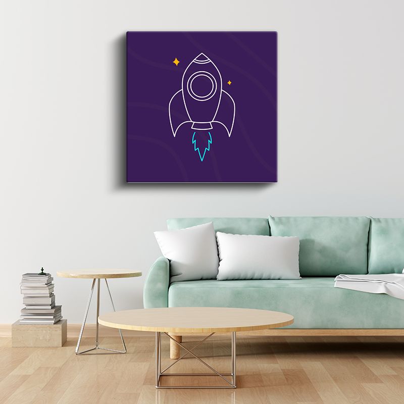 Mor Roket - Minimalist Uzay Yolculuğu Kanvas Tablo