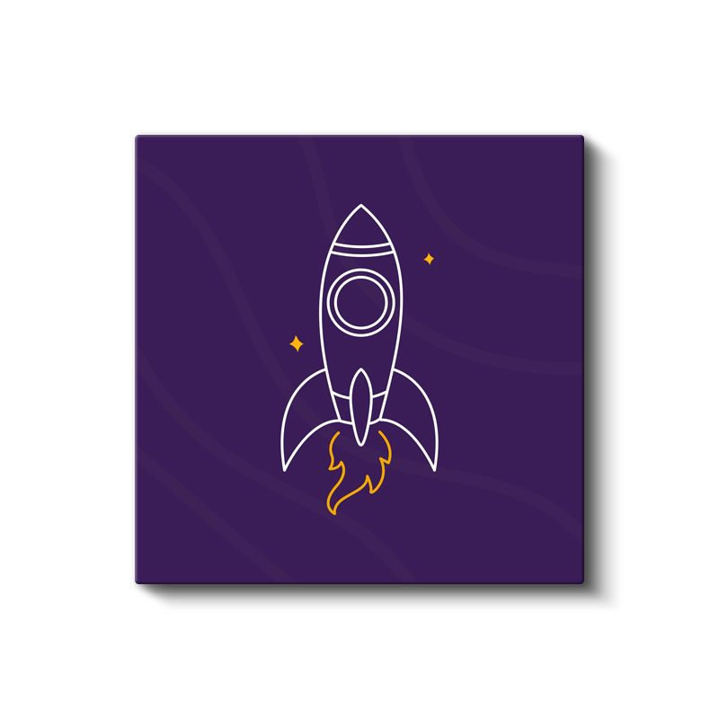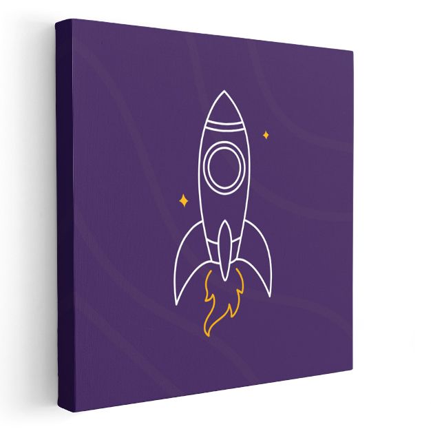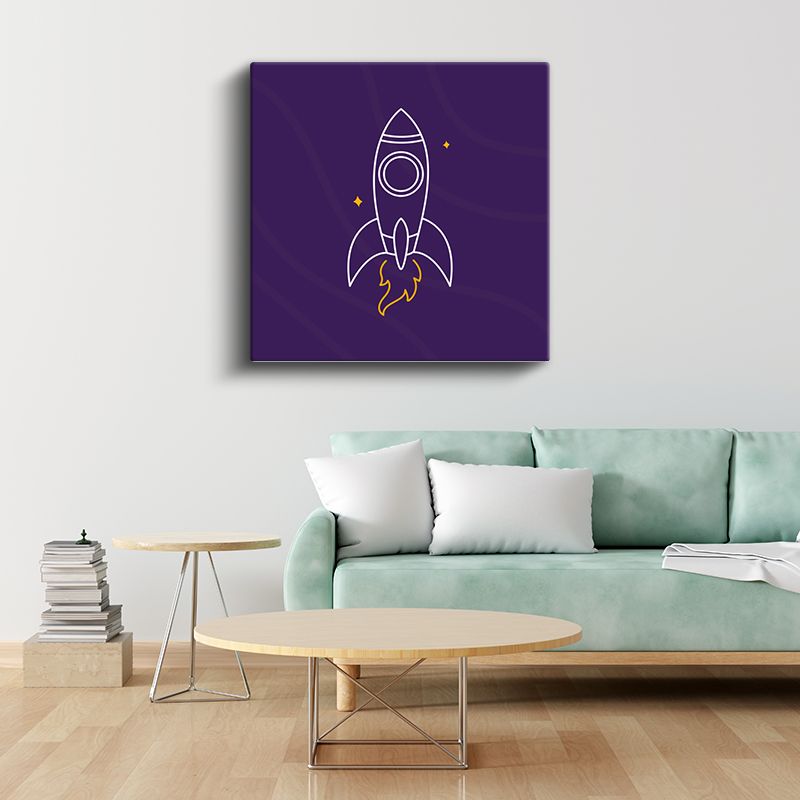 Mor Roket - Minimalist Uzay Yolculuğu Kanvas Tablo