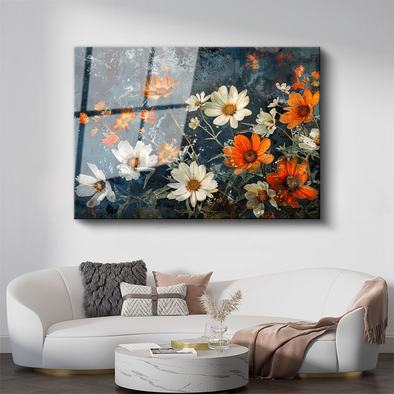 Mor Şakayıklar - Altın Detaylı Lüks Çiçek Tasarımı Cam Tablo
