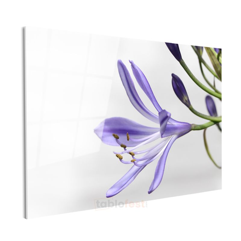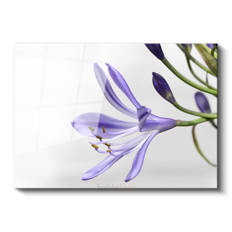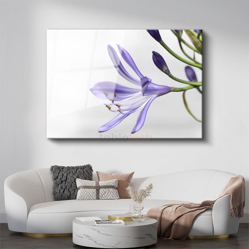 Mor Zambak - Minimalist Beyaz Fonda Zarif Çiçek Portresi Cam Tablo