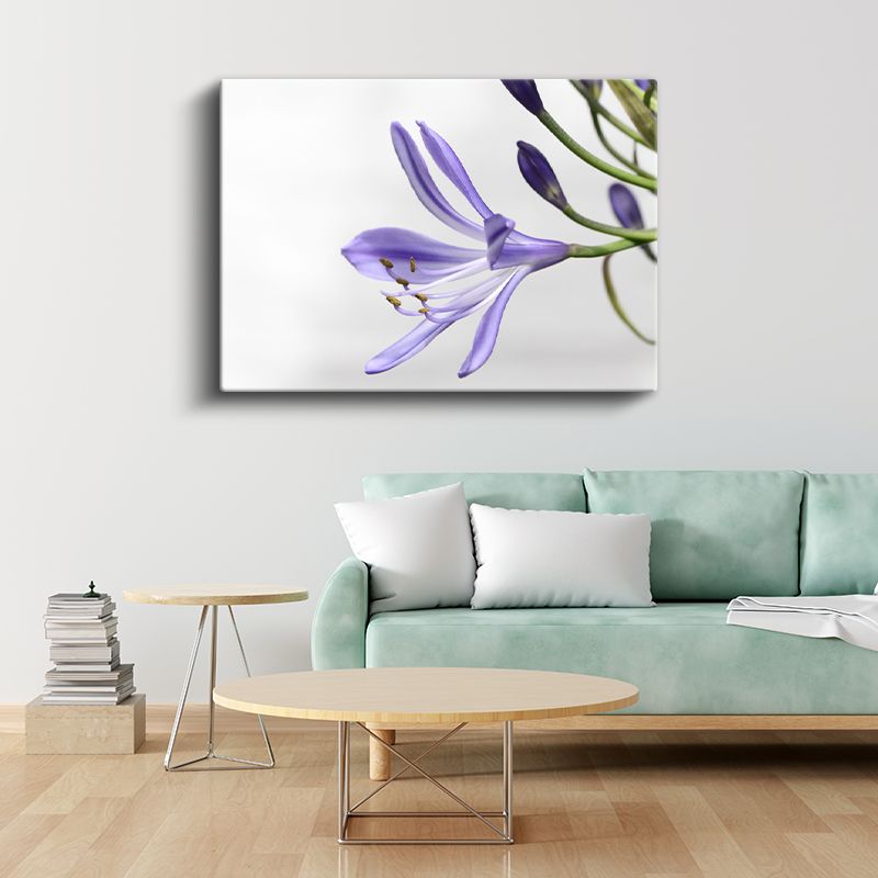 Mor Zambak - Minimalist Beyaz Fonda Zarif Çiçek Portresi Kanvas Tablo