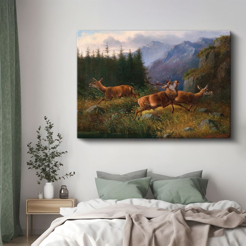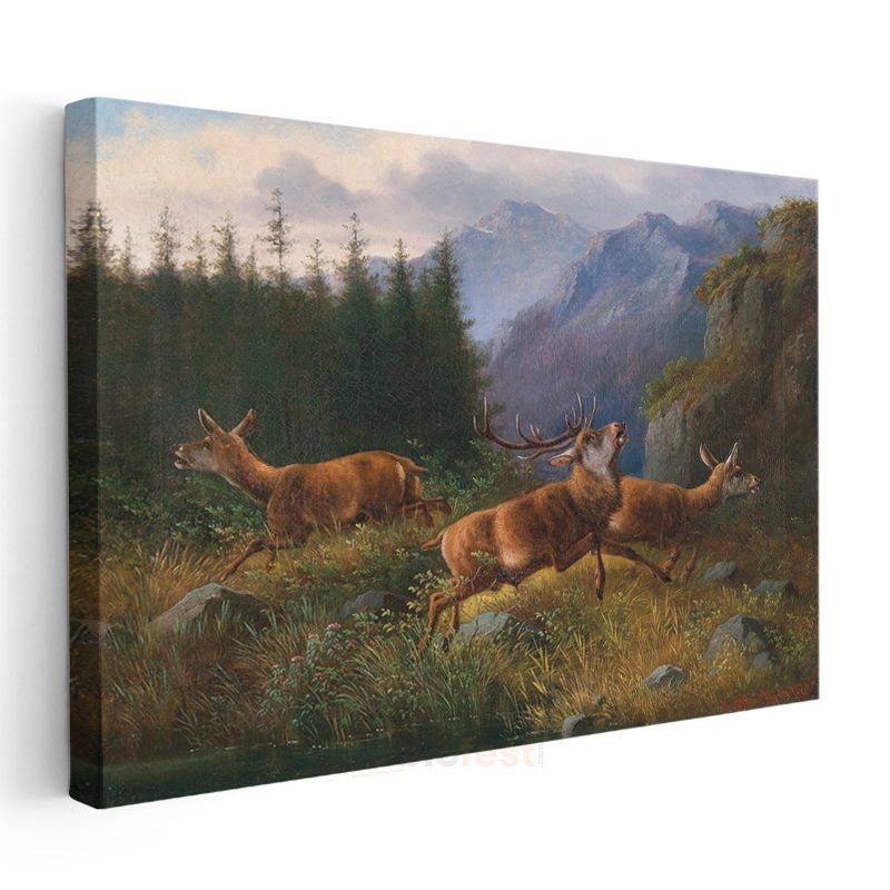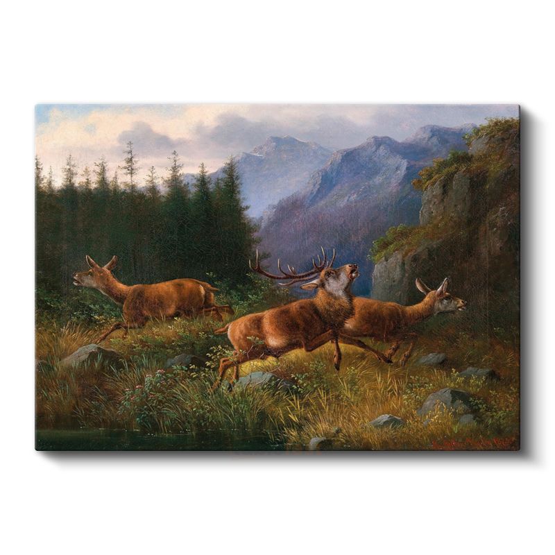 Moritz Müller - Dağlarda Geyikler Kanvas Tablo