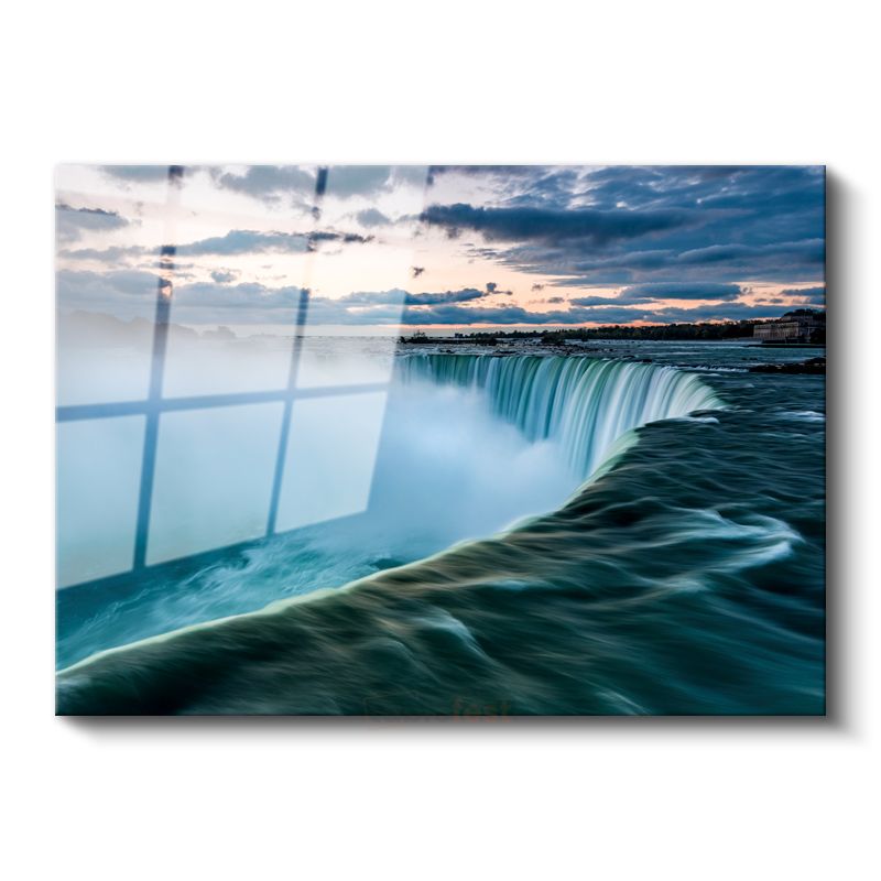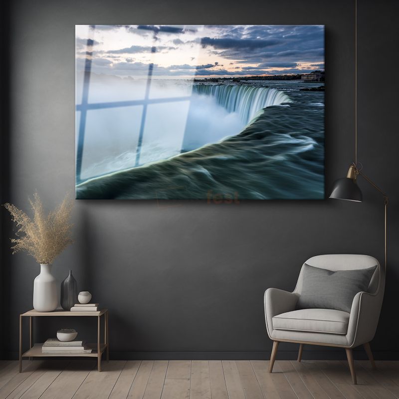 Muhteşem Şelale - Turkuaz Sular ve Gökyüzü Cam Tablo