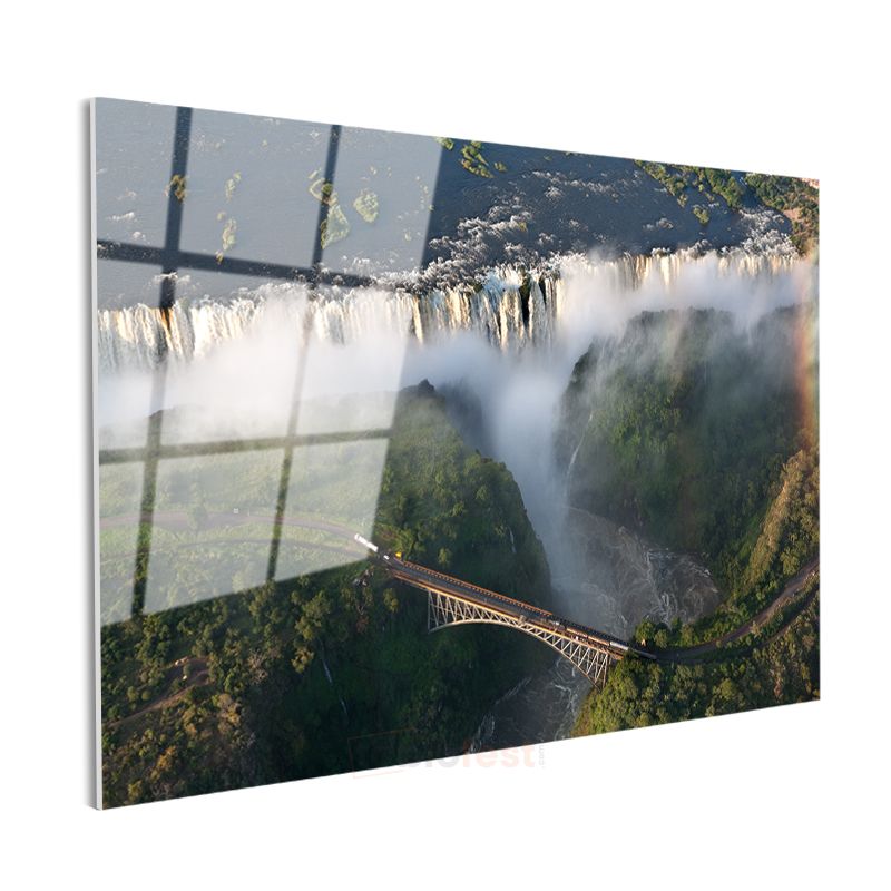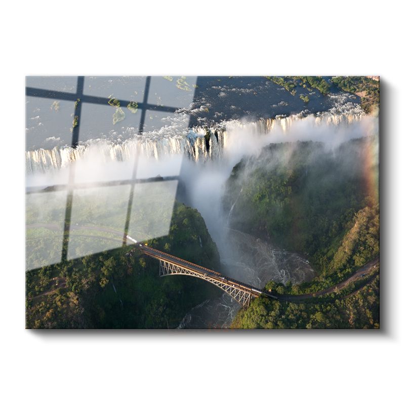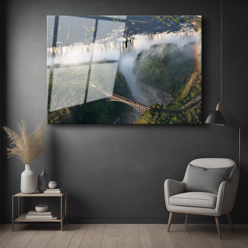 Muhteşem Şelale - Yeşil Vadide Akan Beyaz Sular Cam Tablo