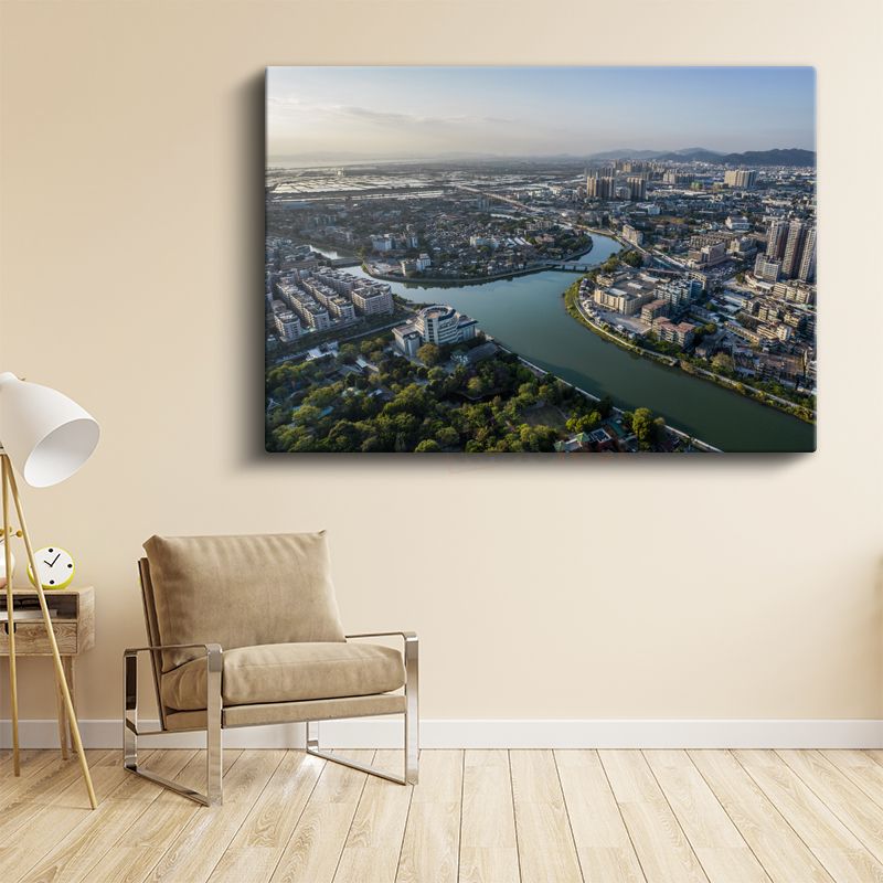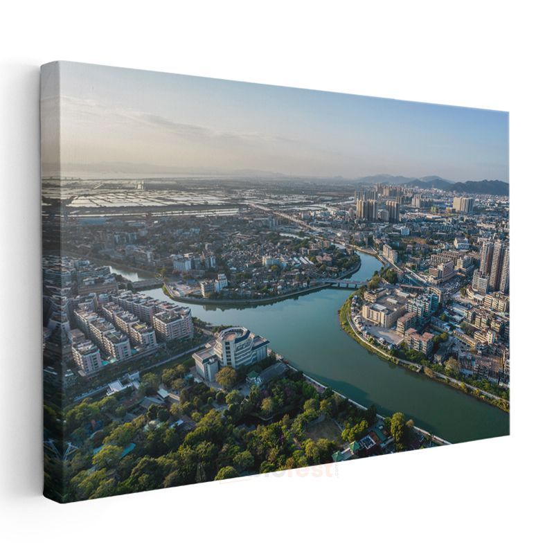 Nehir Kıvrımları - Modern Şehir Silueti Kanvas Tablo