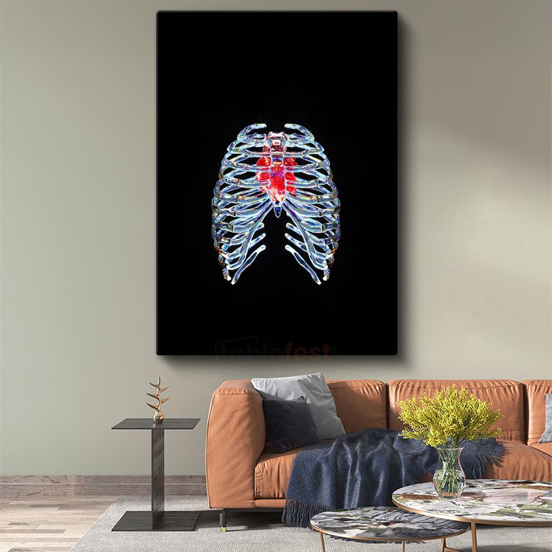 Neon Anatomi - Işıldayan Göğüs Kafesi Kanvas Tablo