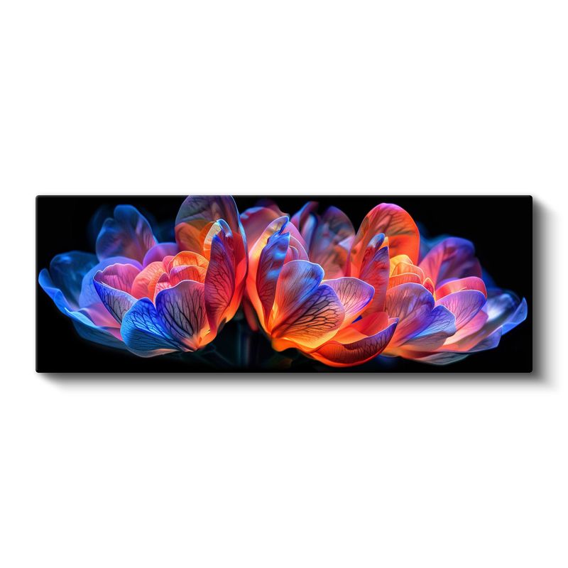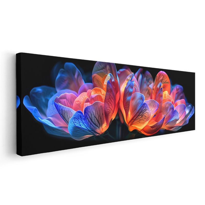 Neon Çiçekler - Siyah Zeminde Çok Renkli Işıltılı Kompozisyon Kanvas Tablo