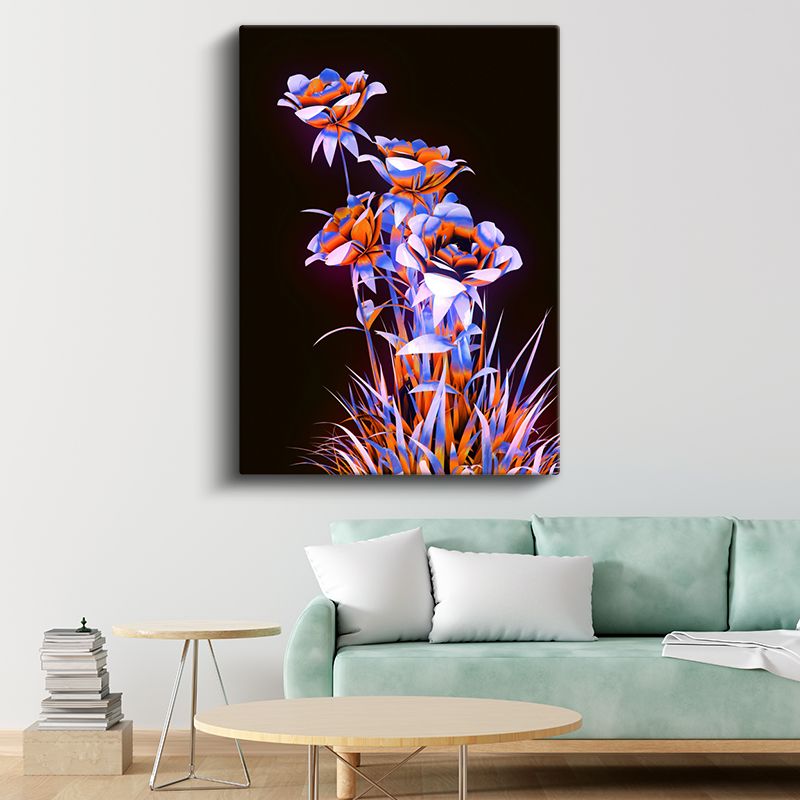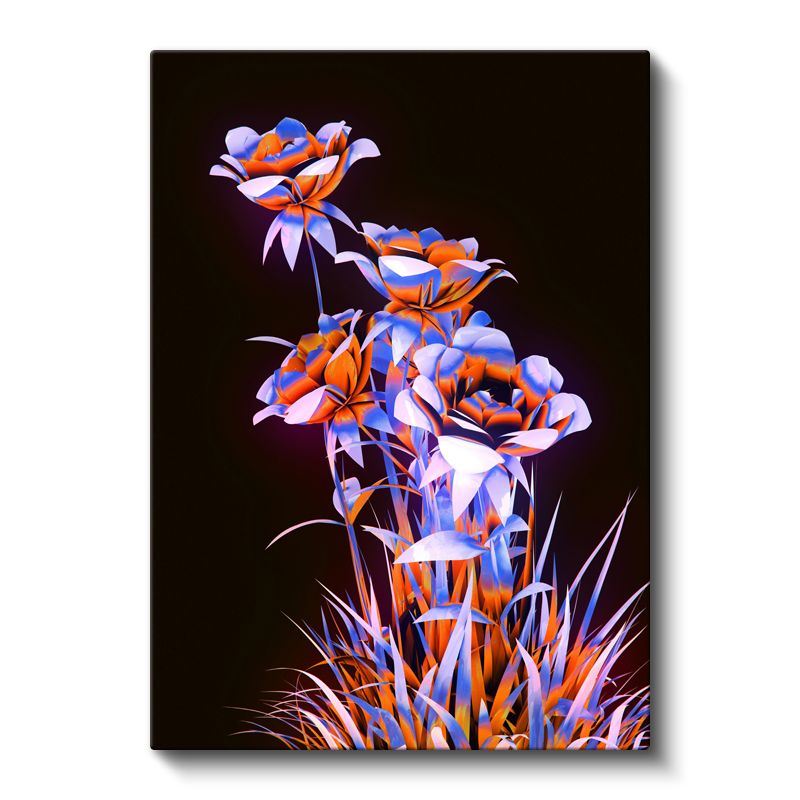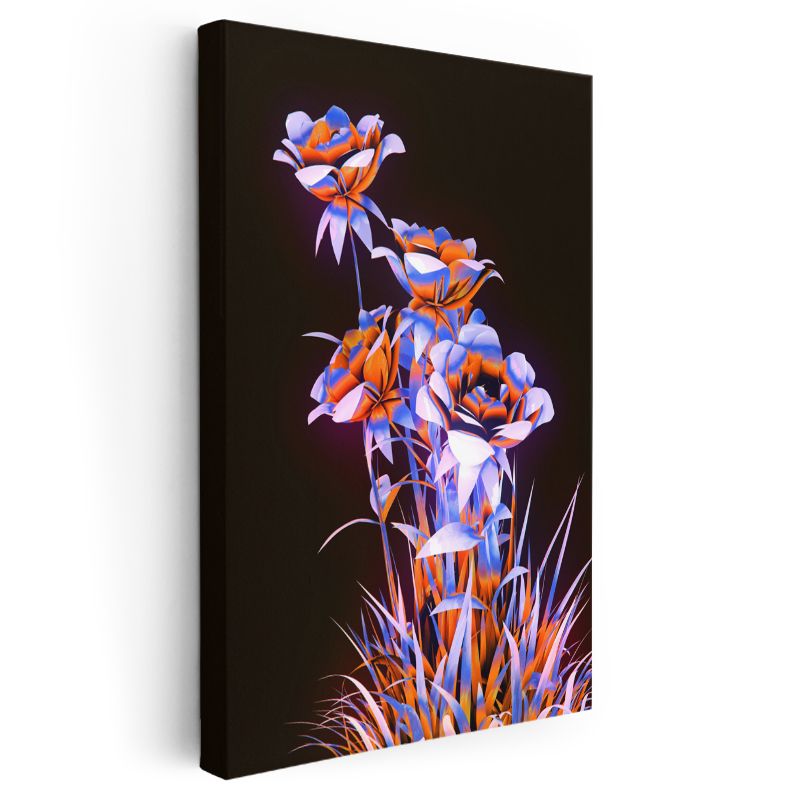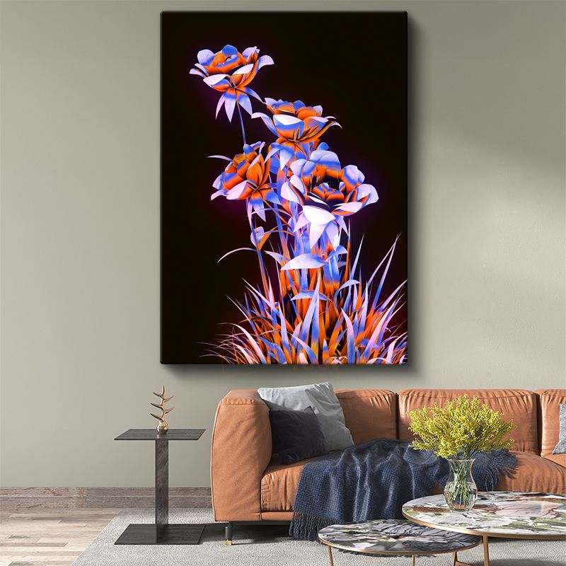 Neon Çiçekler - Turuncu Mavi Kontrast Dijital Sanat Kanvas Tablo