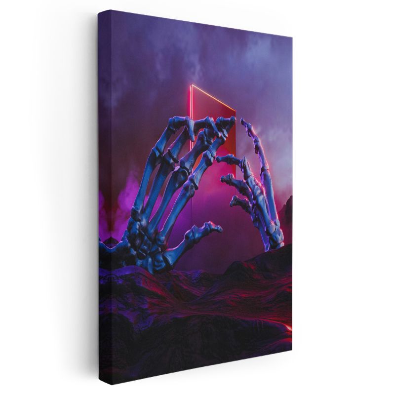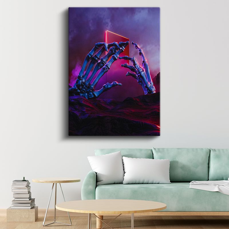 Neon Dokunuş - Mor Atmosfer İskelet Eller Kanvas Tablo