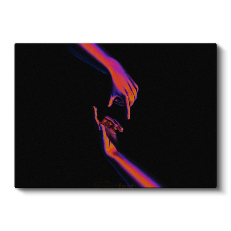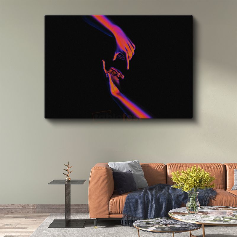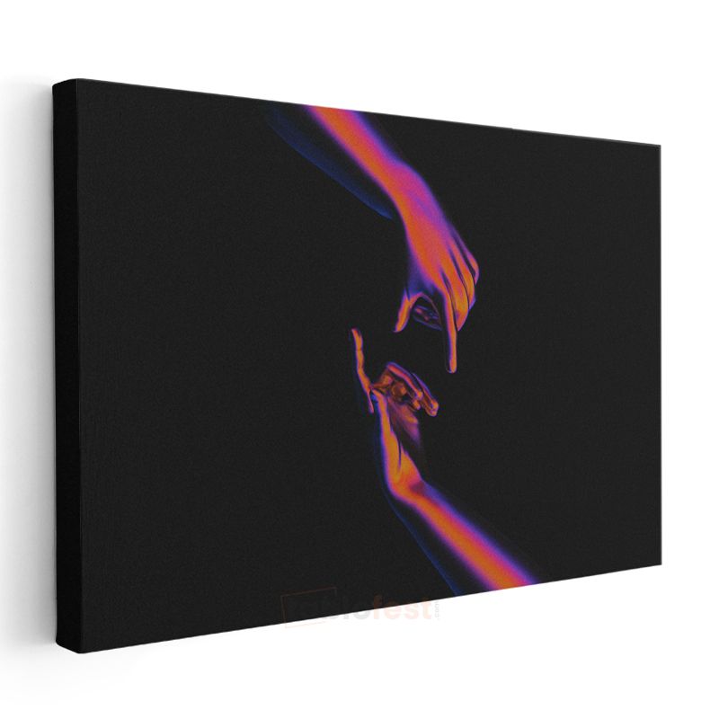 Neon Dokunuş - Siyah Zeminde Renkli El Siluetleri Kanvas Tablo