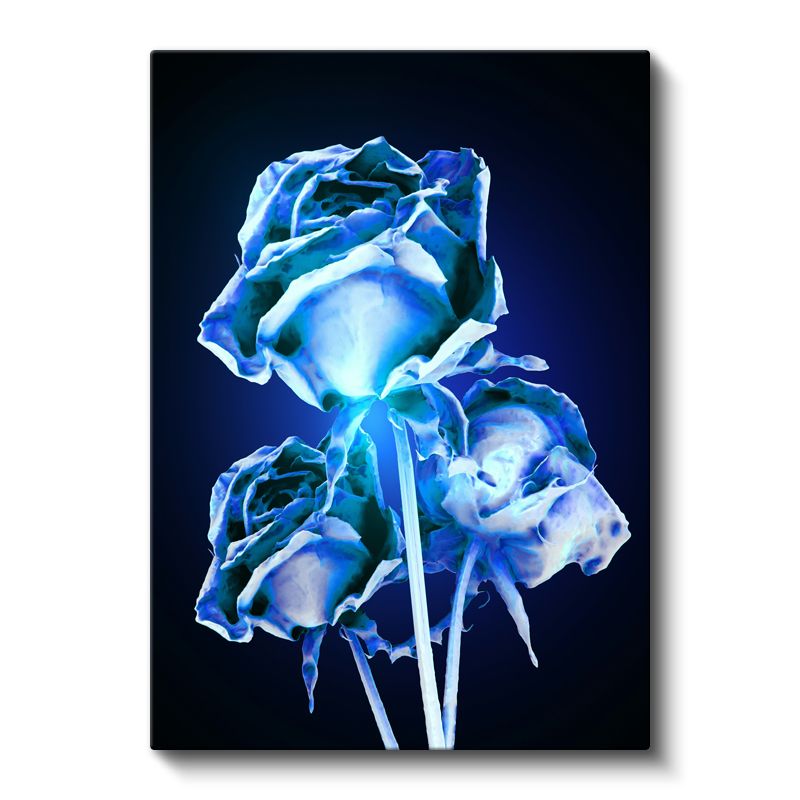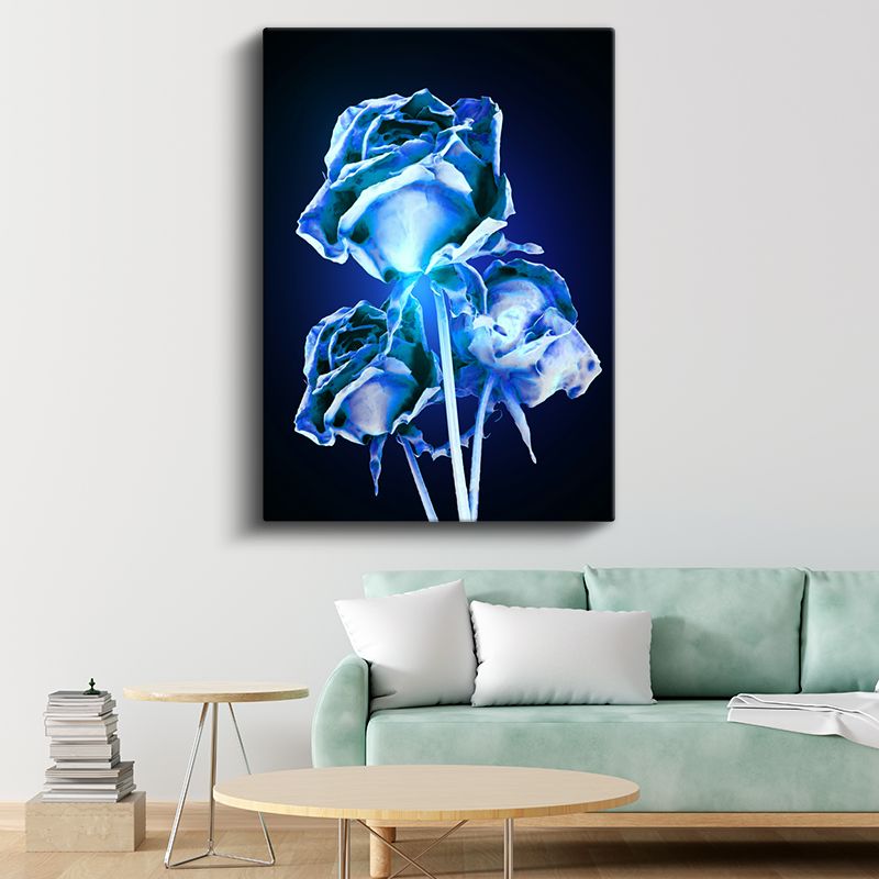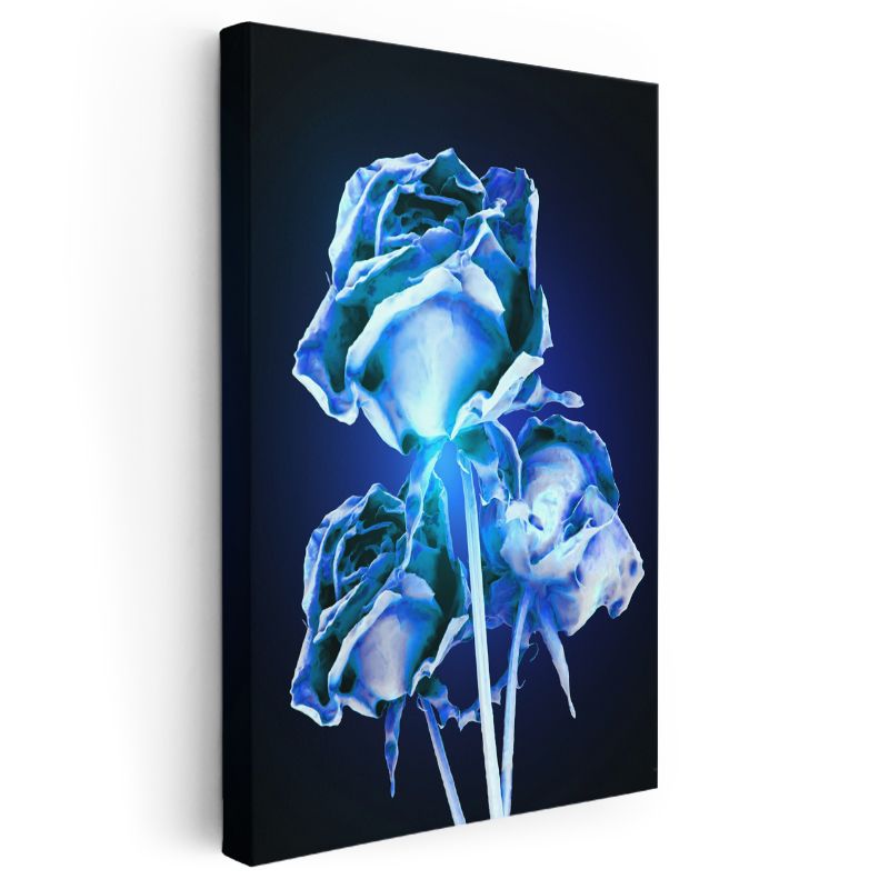 Neon Güller - Elektrik Mavisi Çiçek Kompozisyonu Kanvas Tablo