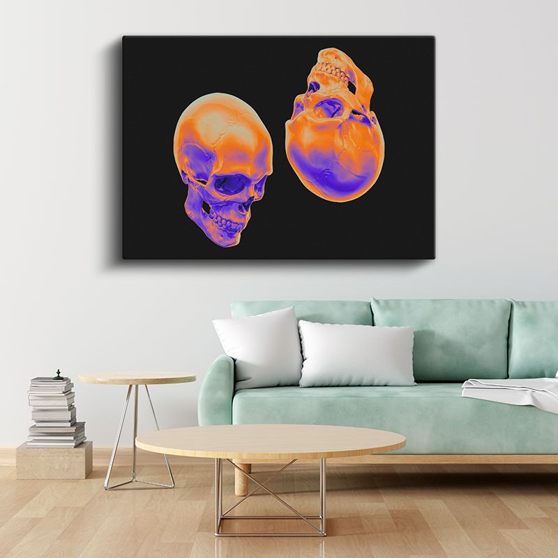 Neon Kafatasları - Modern Dijital Sanat Kanvas Tablo