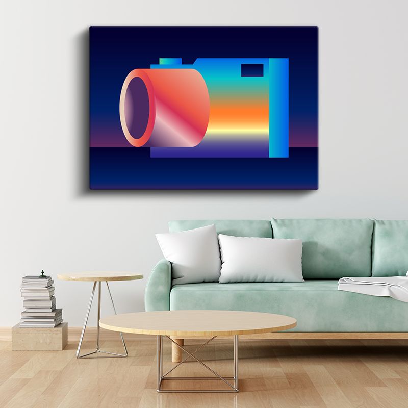 Neon Kamera - Retro Vektörel Gradyan Kanvas Tablo