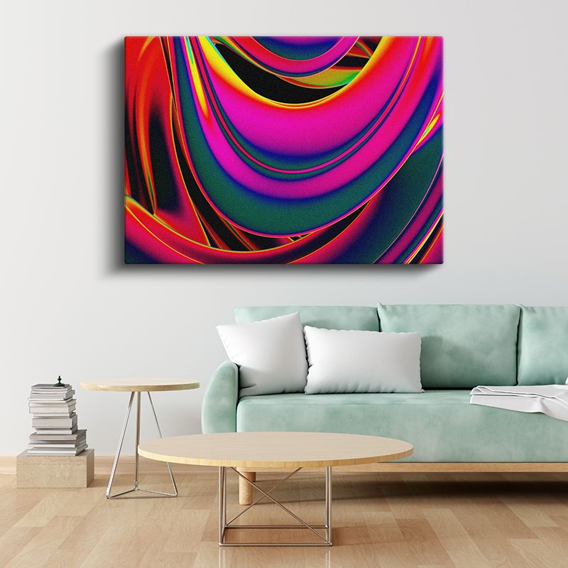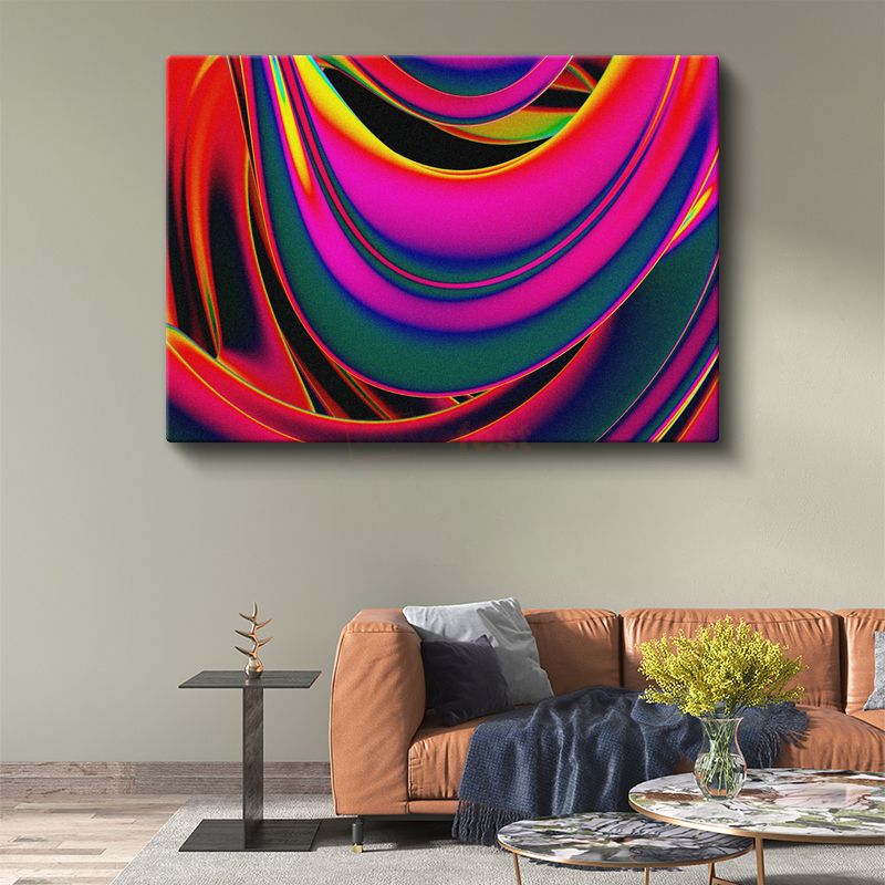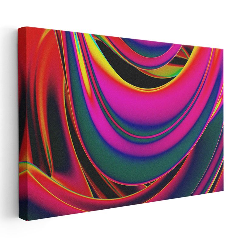 Neon Katmanlar - Dinamik Kavisli Şeritler Kanvas Tablo