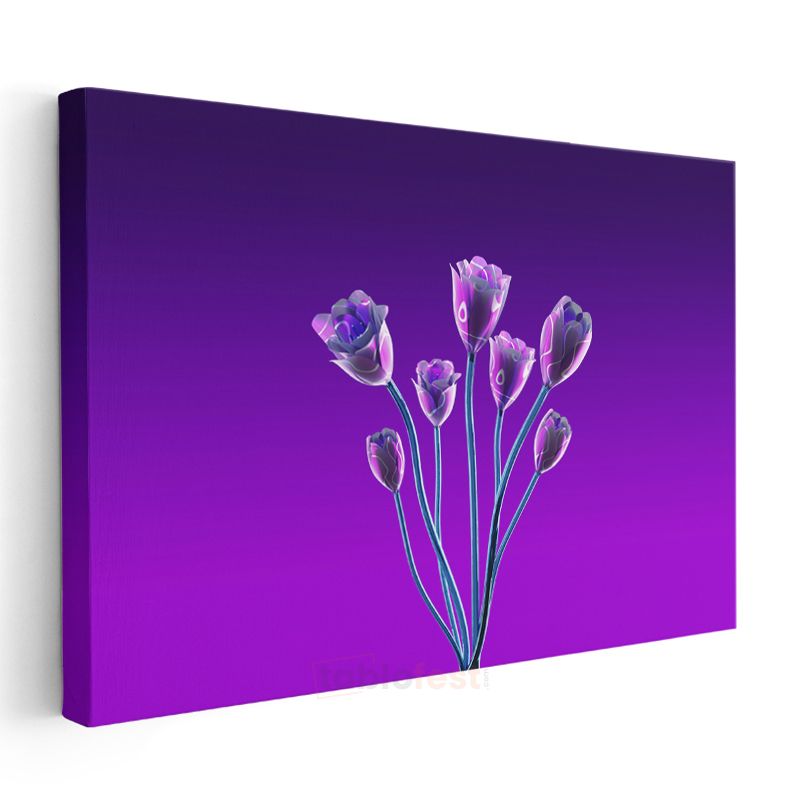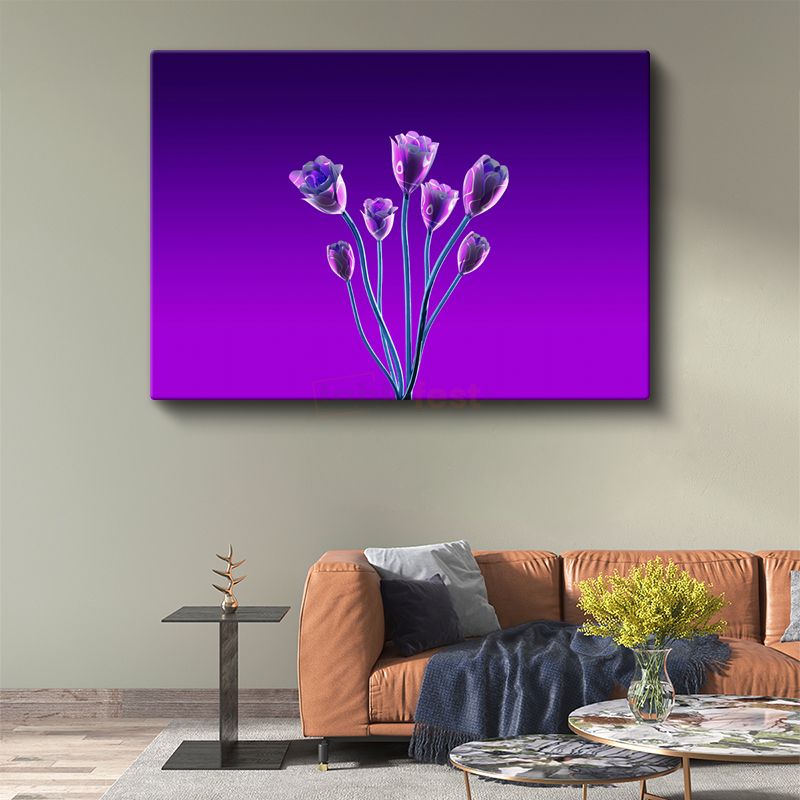 Neon Laleler - Mor Zeminde Dijital Çiçek Kanvas Tablo