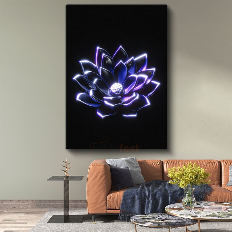 Neon Lotus - Işıklı Çiçek Silüeti Kanvas Tablo