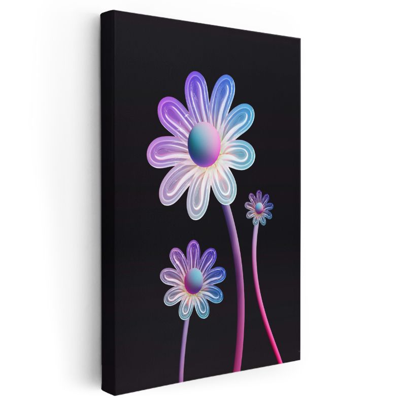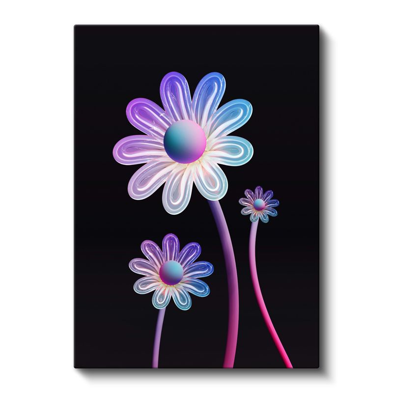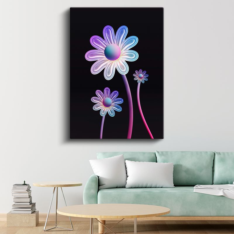 Neon Papatyalar - Parlak Işıltılı Çiçek Desenleri Kanvas Tablo