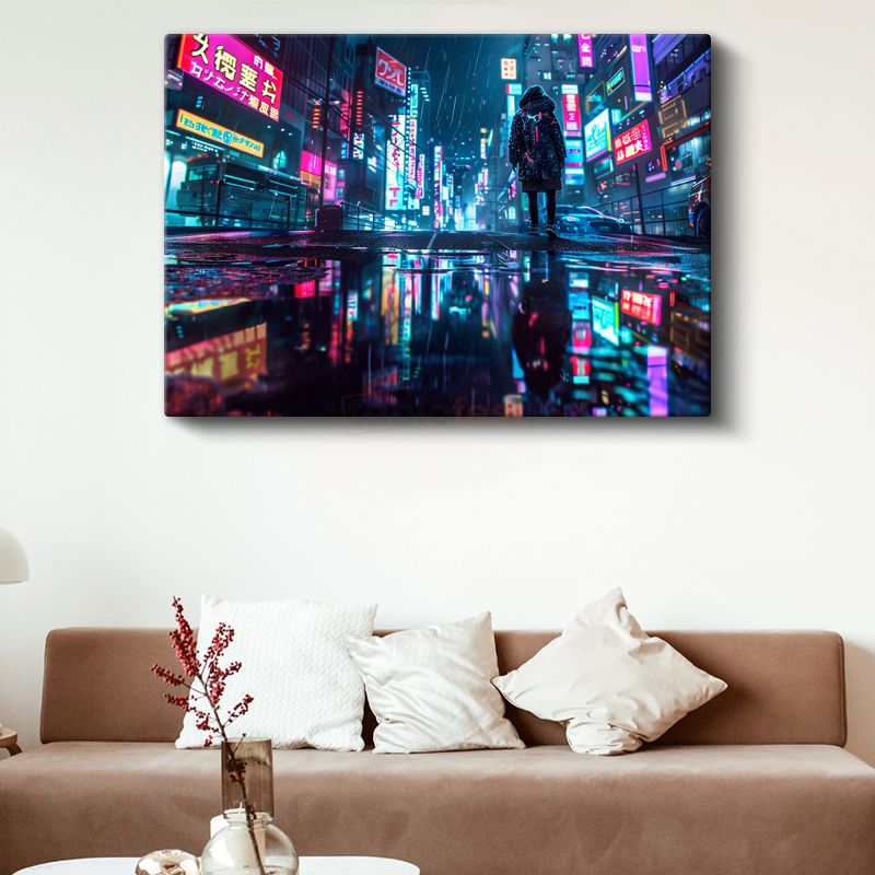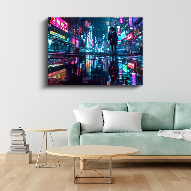 Neon Sokaklar - Yağmurlu Gece Anime Kanvas Tablo