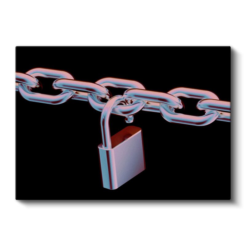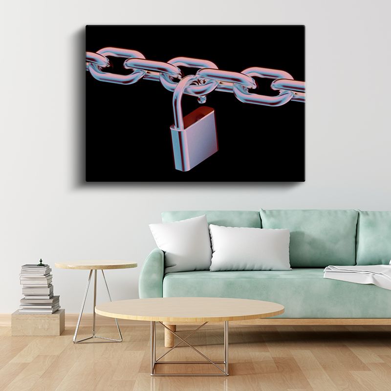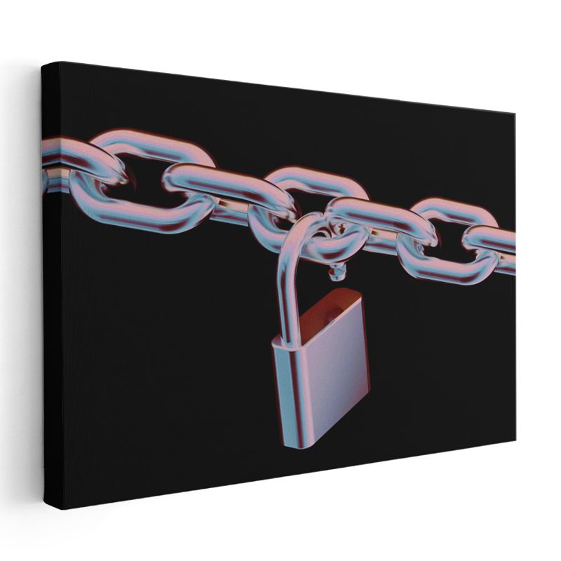 Neon Zincir - Metalik Kilit Detaylı 3D Vektörel Kanvas Tablo