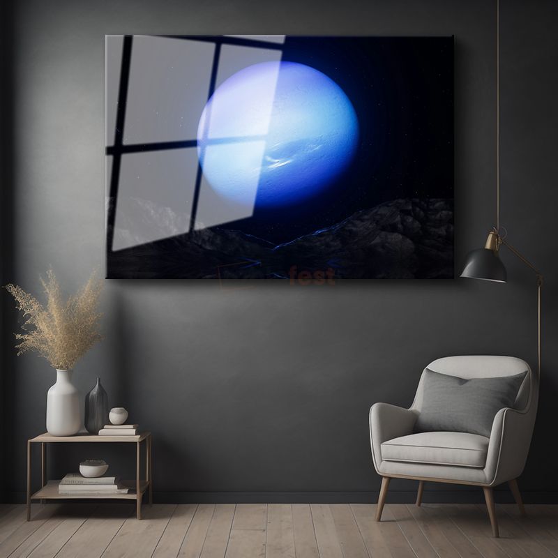 Neptün - Derin Uzayda Parlayan Mavi Gezegen Cam Tablo