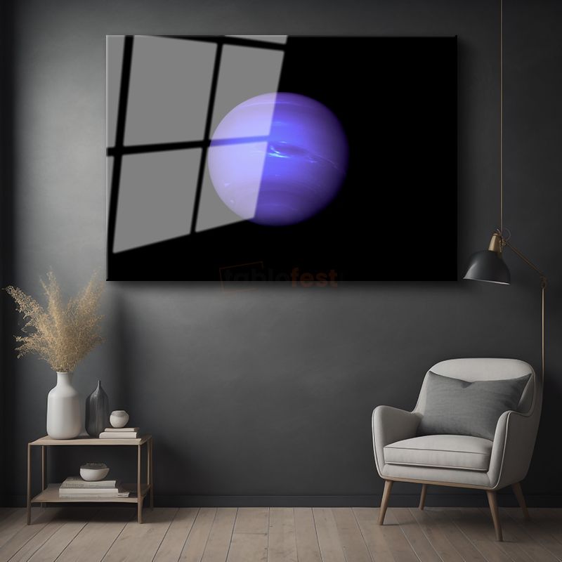 Neptün Gezegeni - Derin Mavi Renkte Buz Devi Cam Tablo