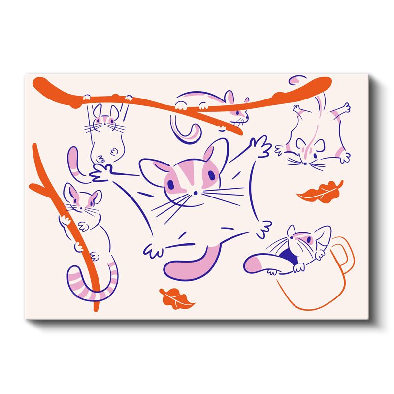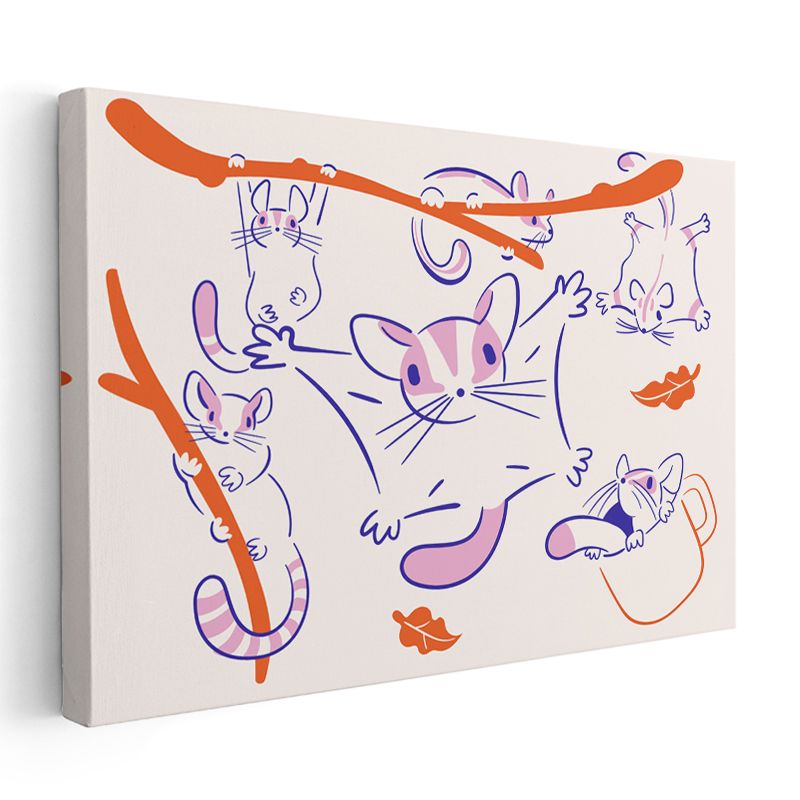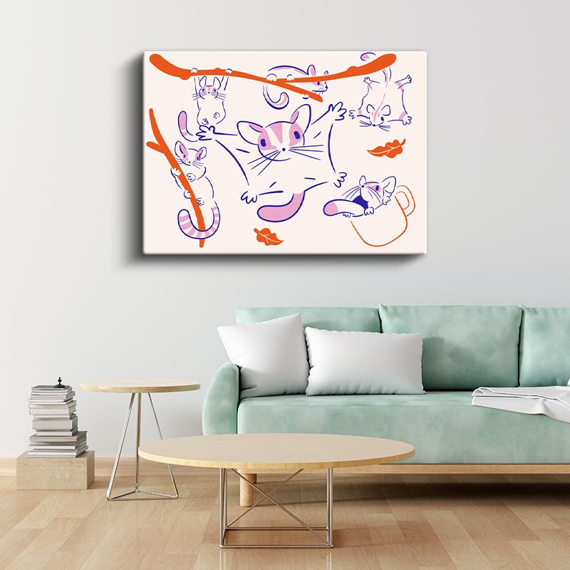 Neşeli Fareler - Çizgi Sanatı Kanvas Tablo