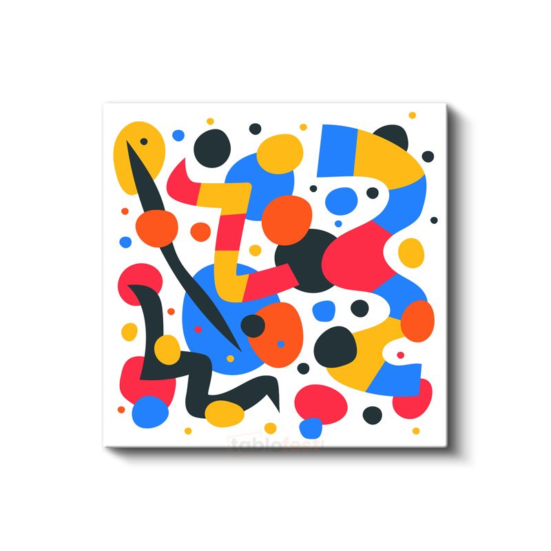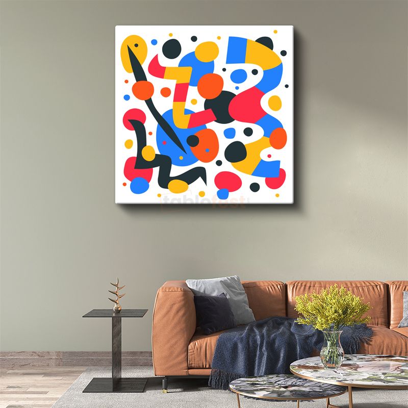 Neşeli Geometri - Canlı Renkli Daireler ve Şekiller Soyut Kompozisyon Kanvas Tablo