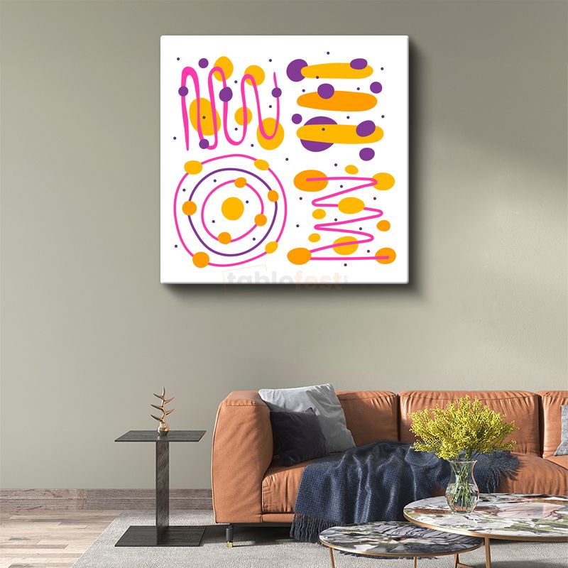 Neşeli Geometri - Ritmik Çizgiler ve Daireler Kanvas Tablo