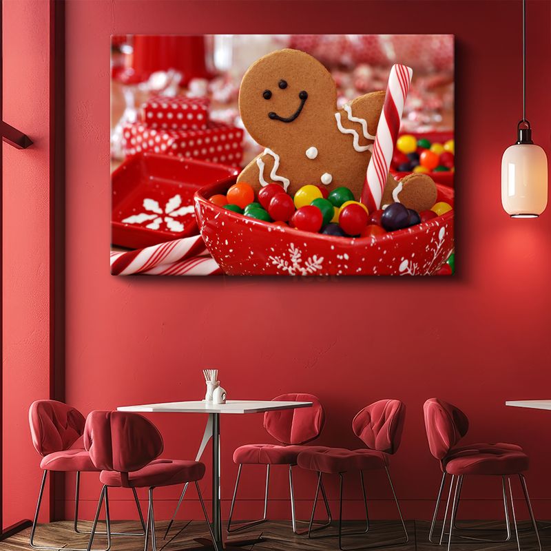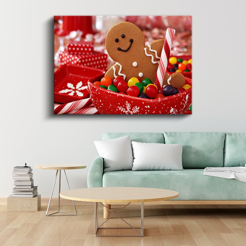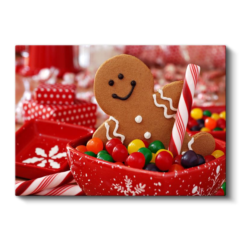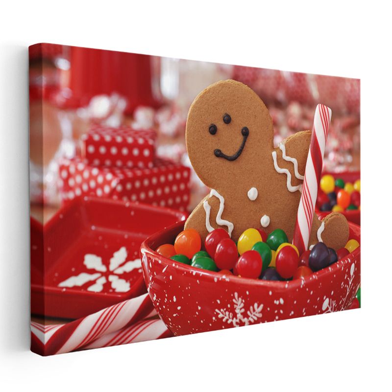 Neşeli Kurabiye Adam - Renkli Şekerlerle Süslenmiş Kanvas Tablo