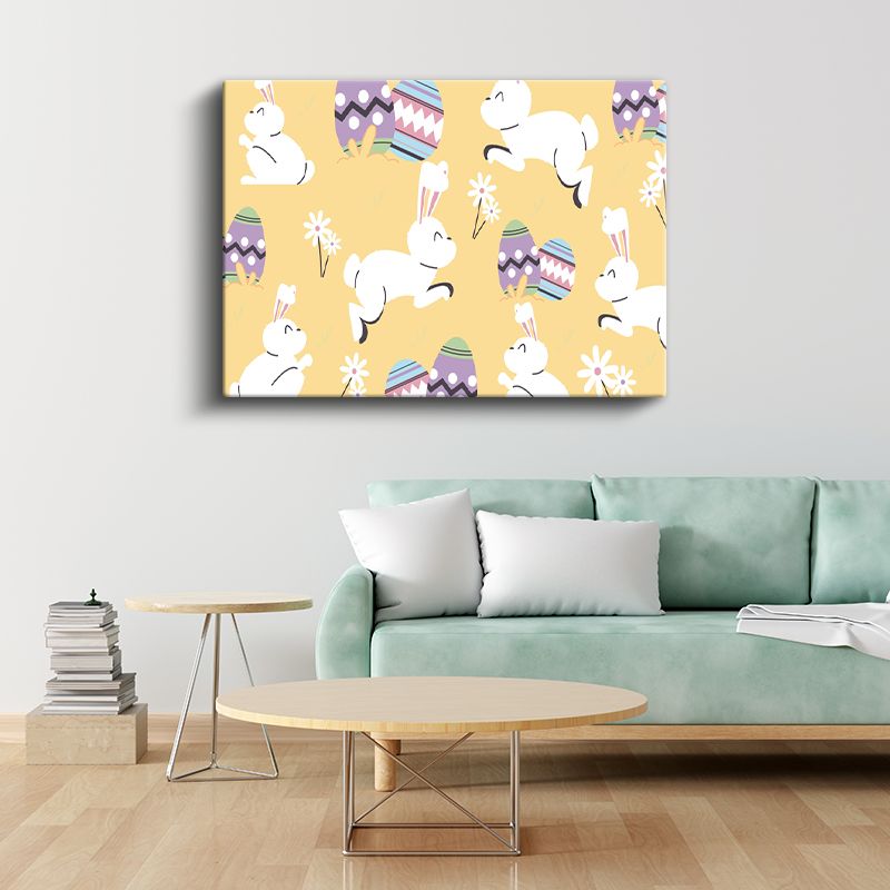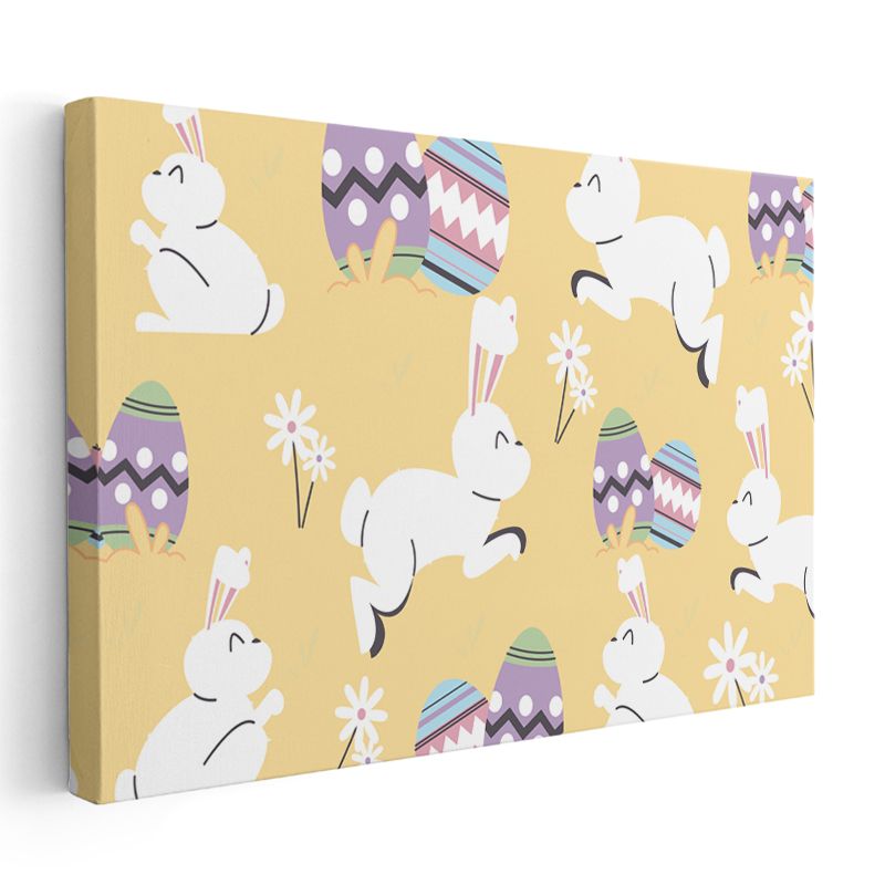Neşeli Tavşanlar - Paskalya Temalı Sevimli Kanvas Tablo