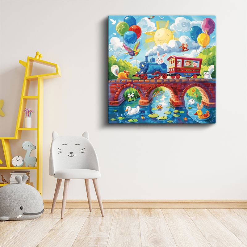Neşeli Tren Yolculuğu - Hayvan Dostlar Kanvas Tablo