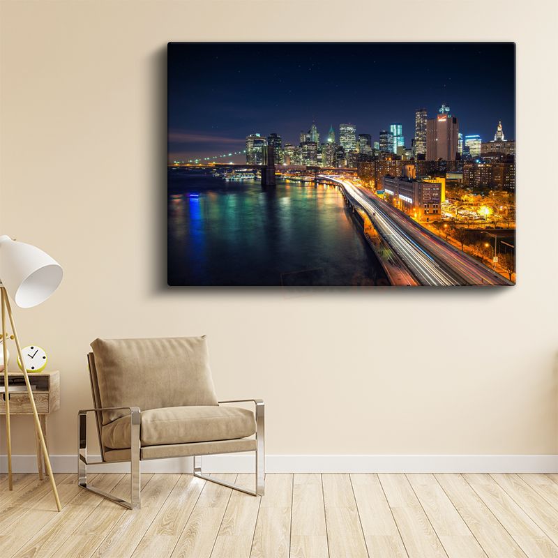 New York Gece Işıkları - Manhattan Silueti Kanvas Tablo