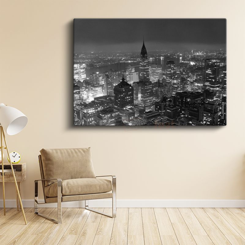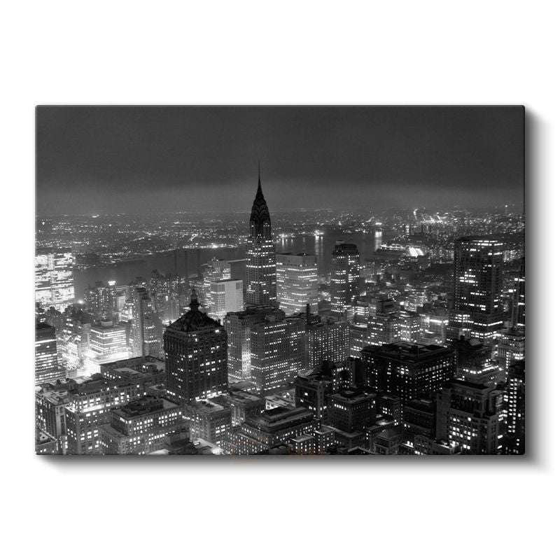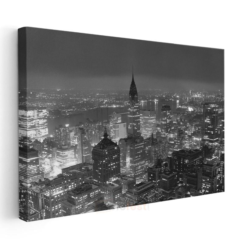 New York Gece Manzarası - Siyah Beyaz Şehir Silüeti Kanvas Tablo