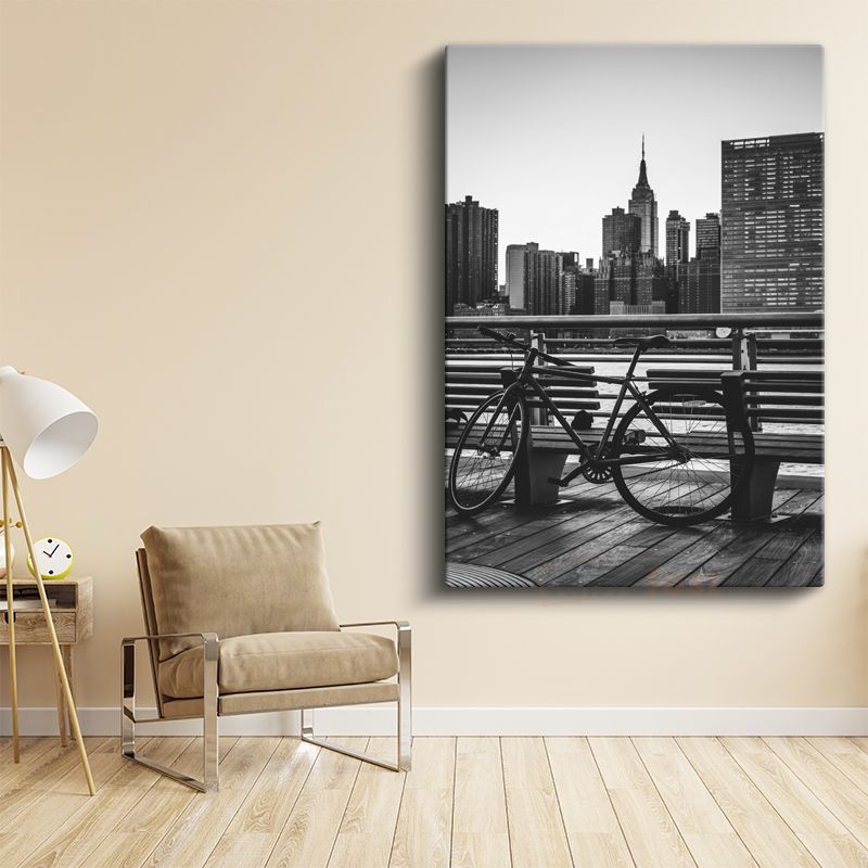 New York Manzarası - Bisiklet ve Bank Kanvas Tablo