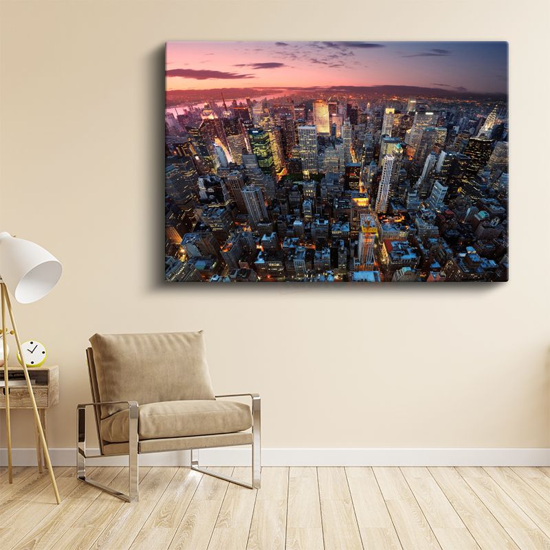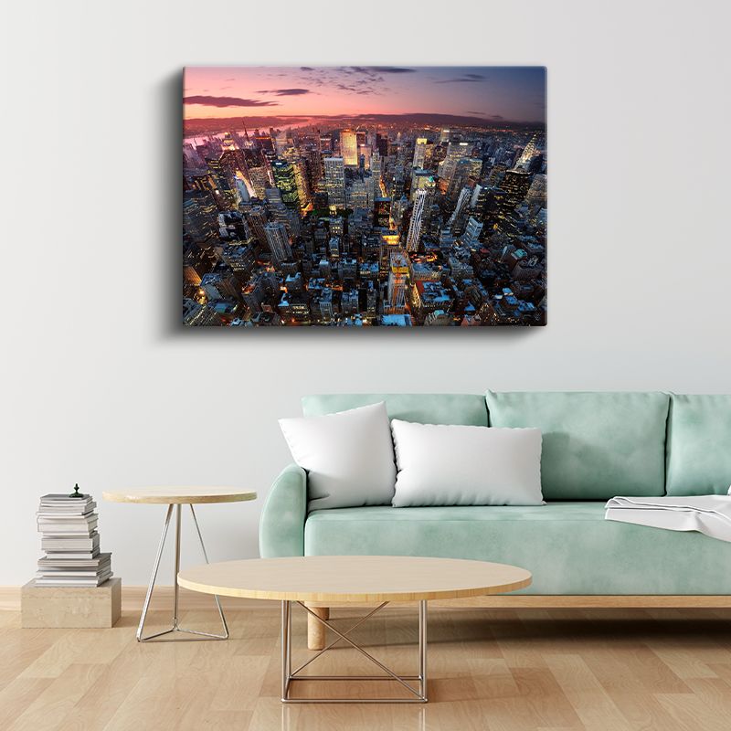New York Manzarası - Gökdelenler ve Gün Batımı Kanvas Tablo