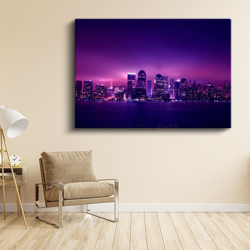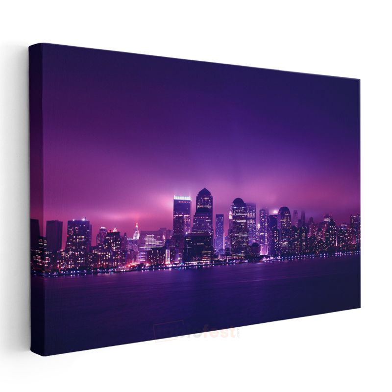 New York Silueti - Mor Işıklarda Metropol Kanvas Tablo