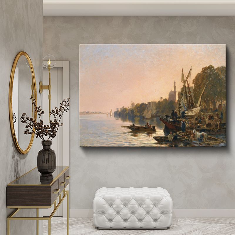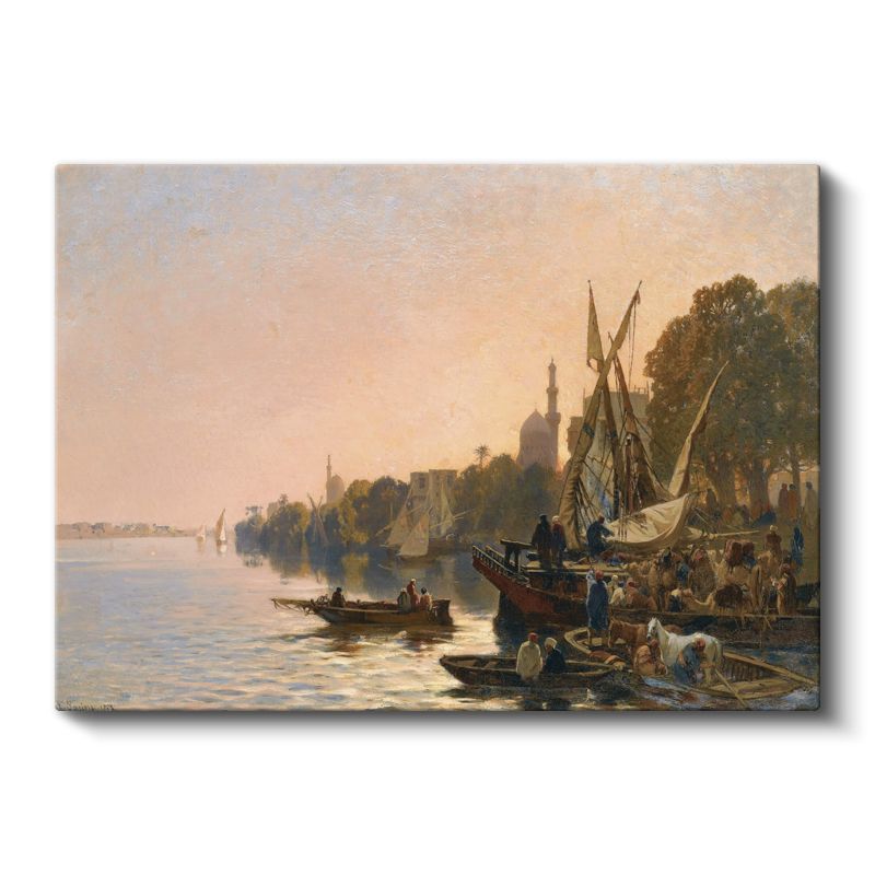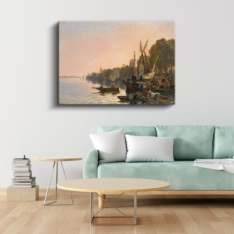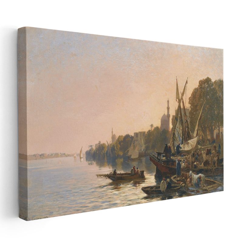 Nil Kıyısı - Gün Batımında Tekneler ve Manzara Kanvas Tablo