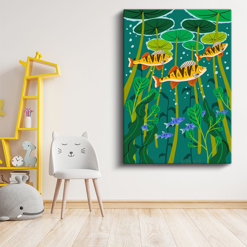 Nilüfer Gölü - Renkli Balıklar ve Su Bitkileri Kanvas Tablo