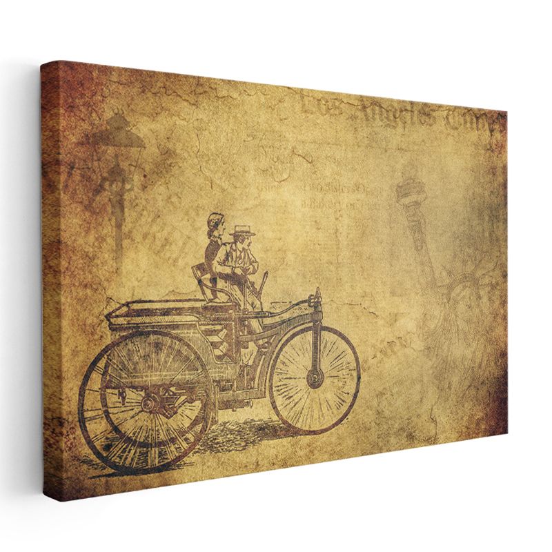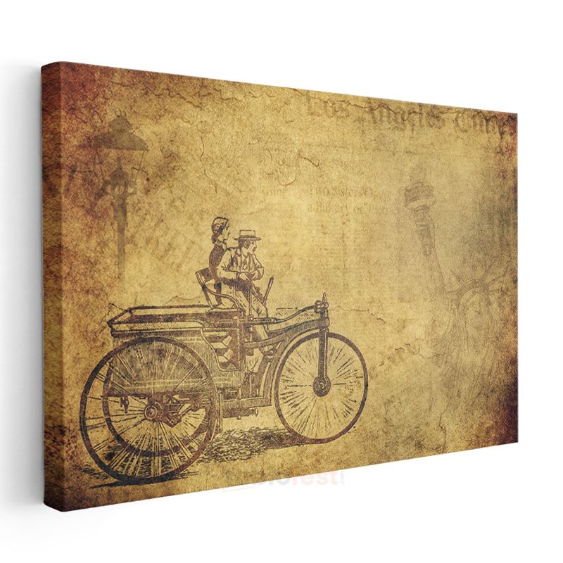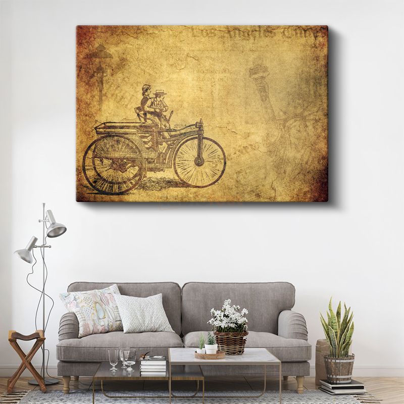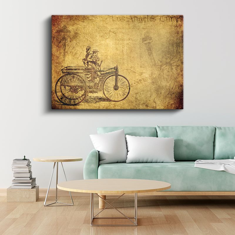 Nostaljik Bisiklet - El Yapımı Antika Tasarım Kanvas Tablo