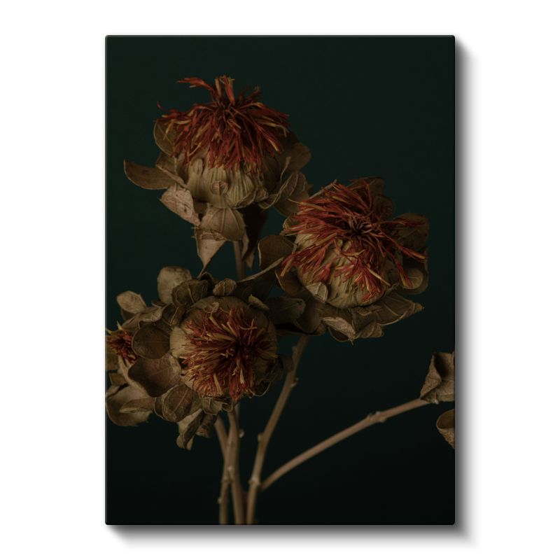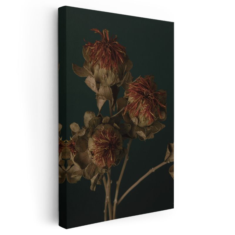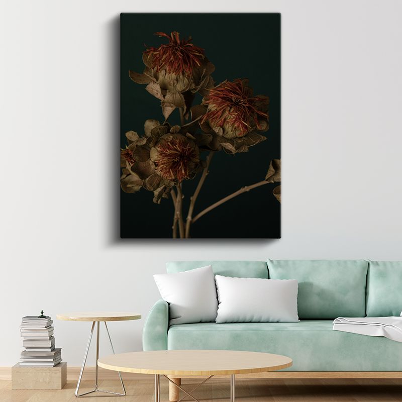 Nostaljik Çiçekler - Vintage Koyu Zeminde Kurumuş Çiçekler Kanvas Tablo
