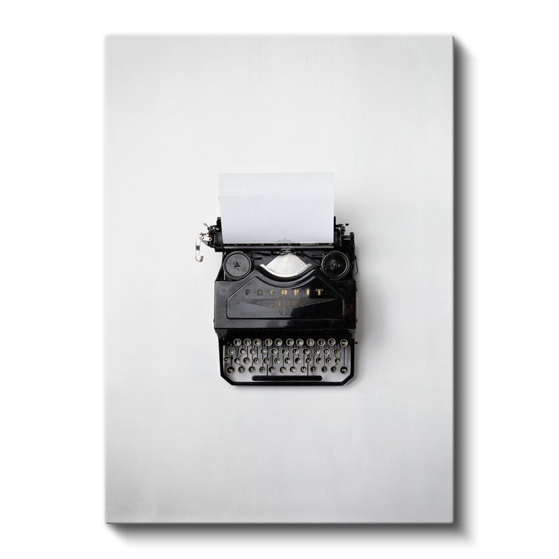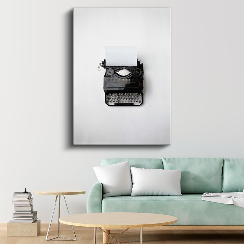 Nostaljik Daktilo - Siyah Beyaz Retro Yazı Makinesi Kanvas Tablo