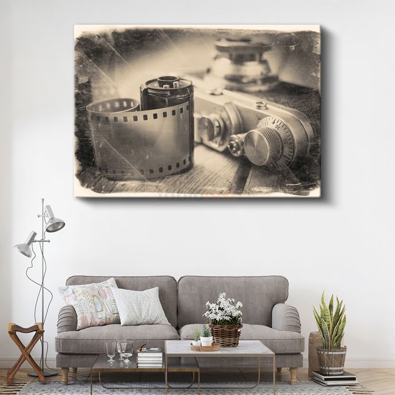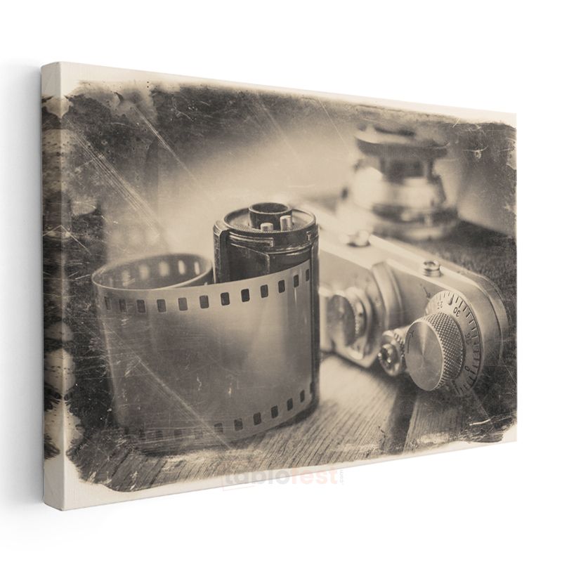 Nostaljik Fotoğraf Makinesi - Film Şeridi Detaylı Kanvas Tablo