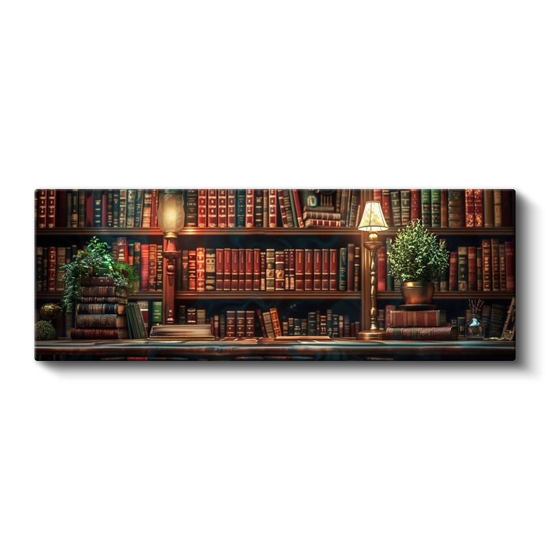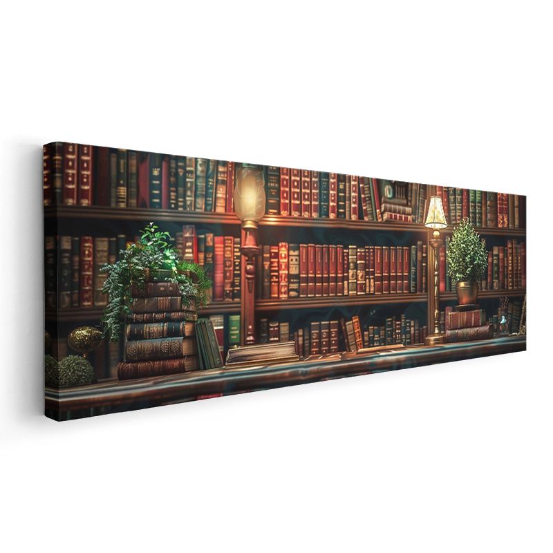 Nostaljik Kitaplık - Klasik Ciltler ve Yeşil Bitkilerle Tasarım Kanvas Tablo