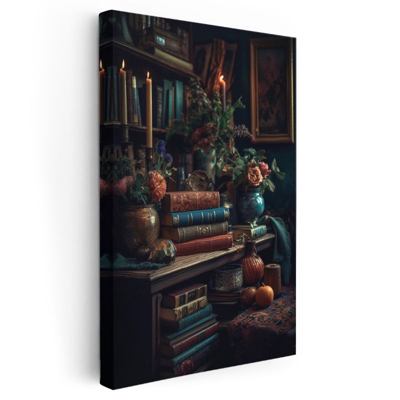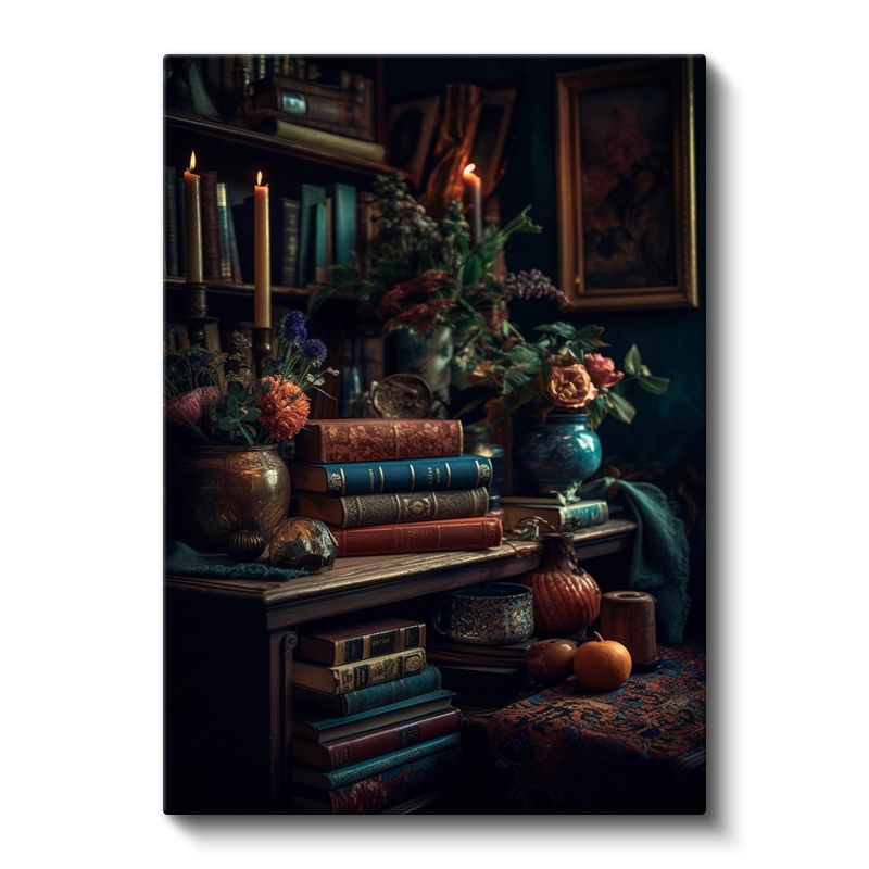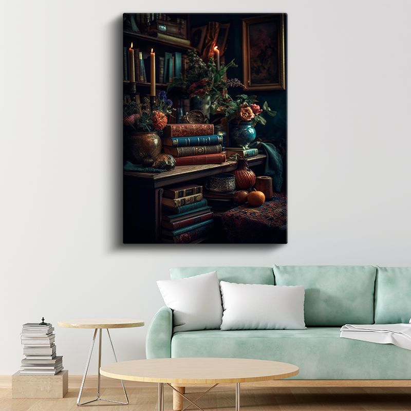 Nostaljik Kütüphane - Klasik Kitaplar ve Mumlarla Süslenmiş Kanvas Tablo