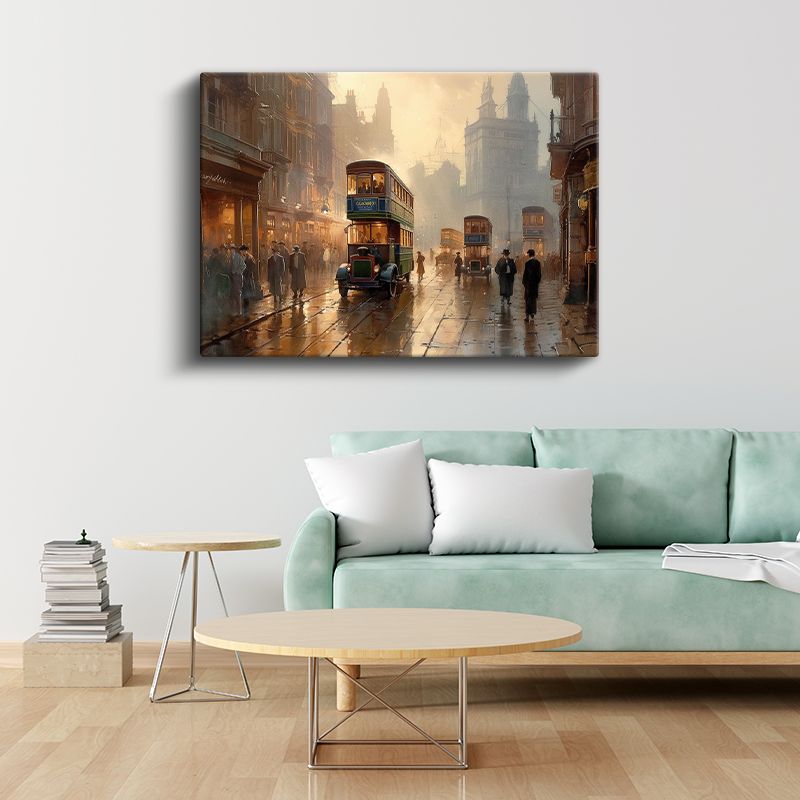 Nostaljik Londra - Tramvaylı Sokak Kanvas Tablo