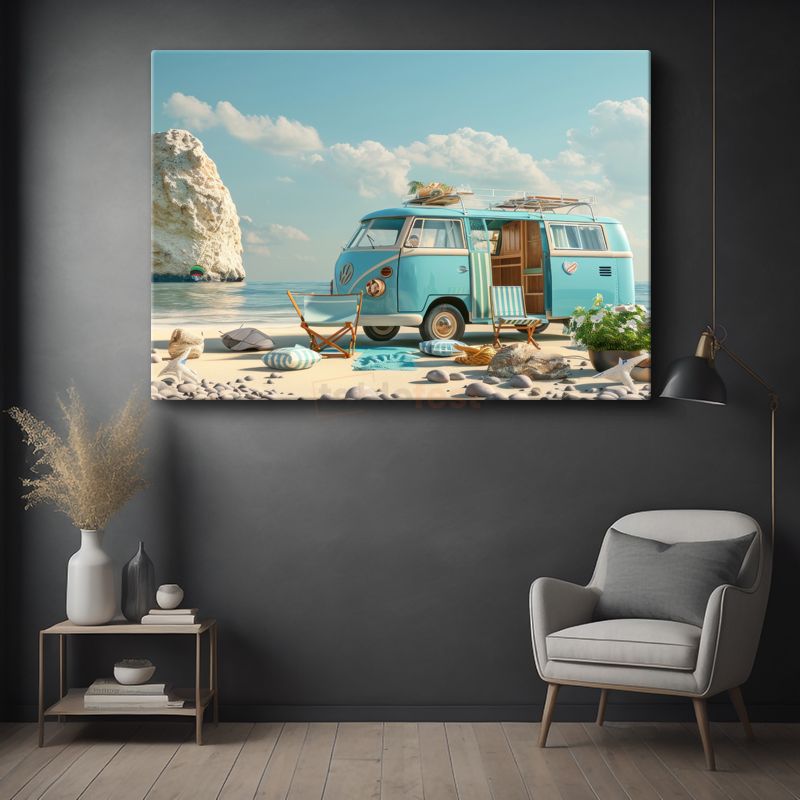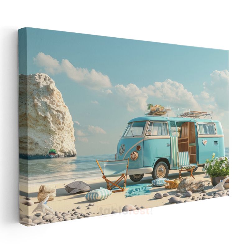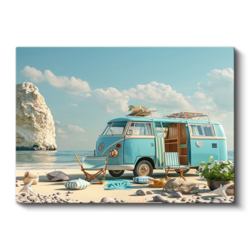 Nostaljik Minibüs - Turkuaz Sahil Kaçamağı Kanvas Tablo