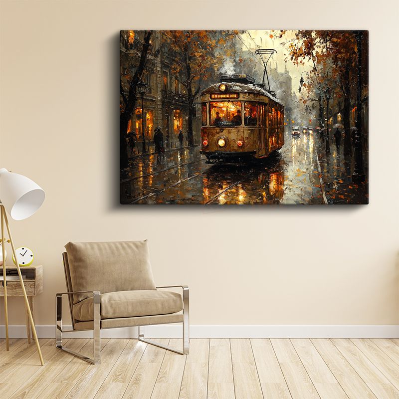 Nostaljik Tramvay - Sonbahar Sokak Manzarası Kanvas Tablo