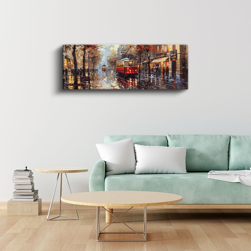 Nostaljik Tramvay - Sonbahar Yaprakları Kanvas Tablo
